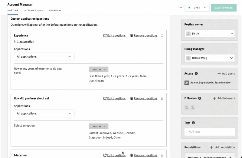 With this launch, we’re also introducing enhanced controls for application questions—designed to reduce repetitive setup, lower compliance risk, and create a clearer, more consistent experience for candidates.